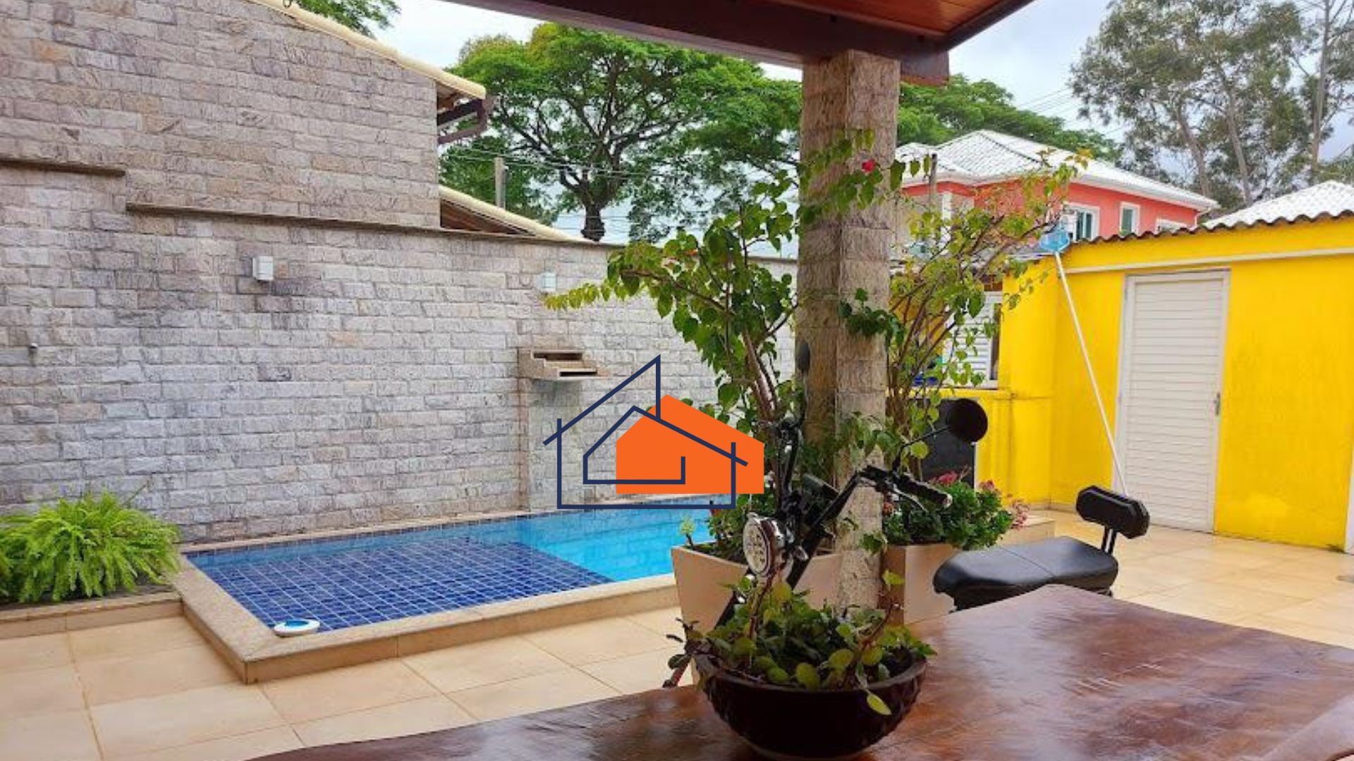 O condomínio oferece portaria 24h, monitoramento por câmeras, coleta de lixo e uma piscina coletiva, garantindo segurança e lazer para toda a família.