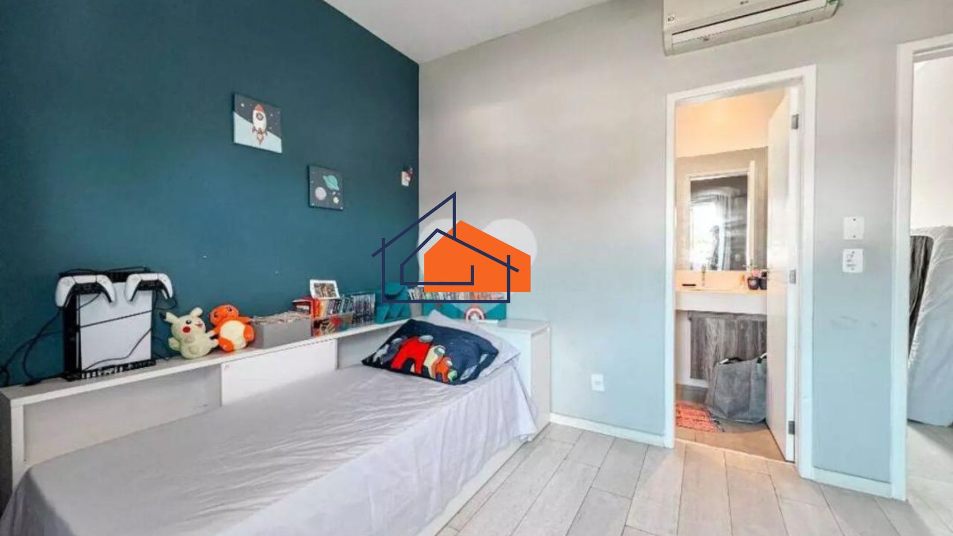 • 2º Pavimento: 3 suítes com armários planejados e ar-condicionado, sendo a master com uma linda varanda.
