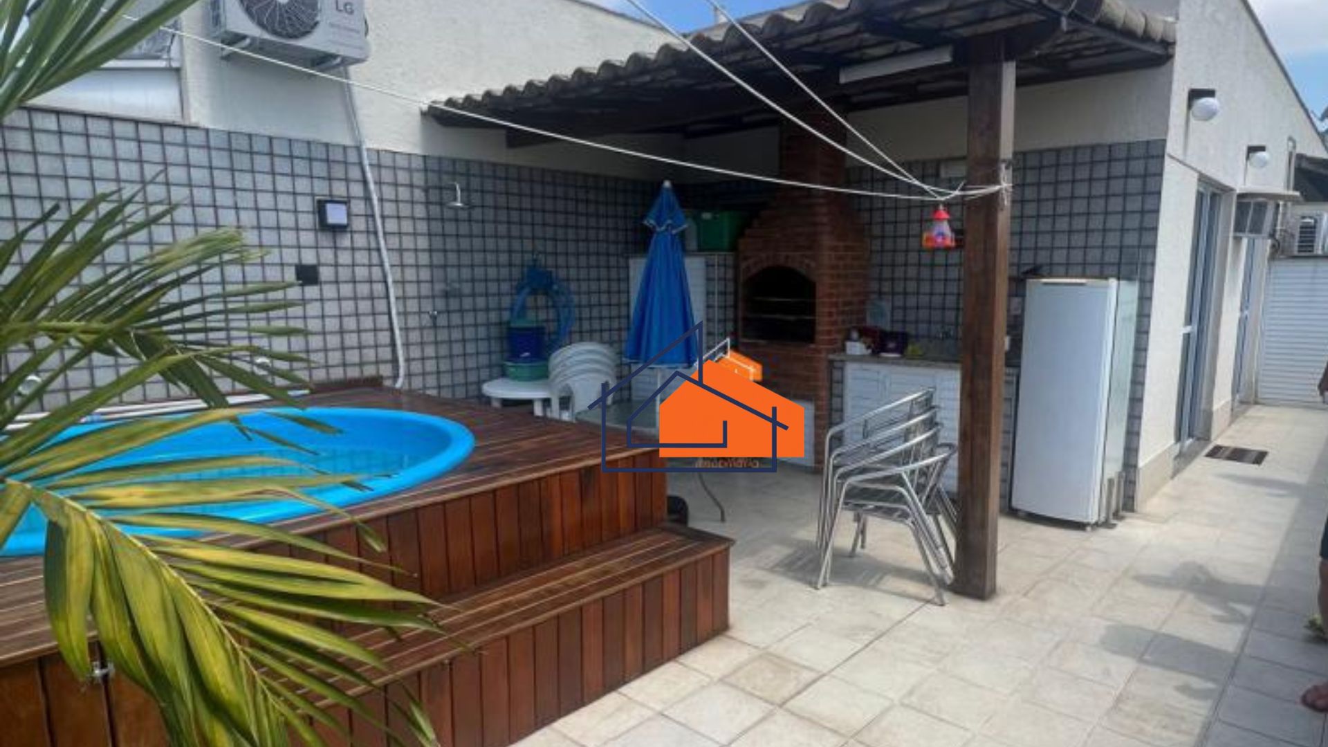A área de lazer conta com um deck de madeira, piscina, churrasqueira completa com pia, armários e bancada, além de uma vista indevassável e sol da manhã. Tudo isso em um ambiente decorado com móveis planejados, iluminação embutida e sancas de gesso.